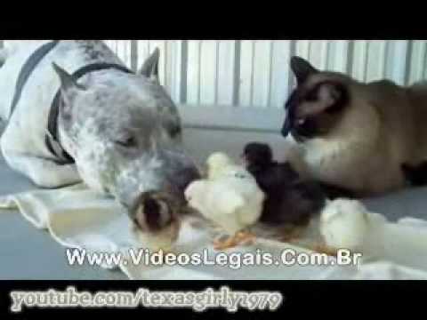 Perro, gato y pollitos